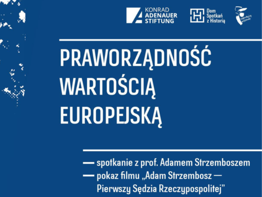Dom Spotkań z Historią i Fundacja Konrada Adenauera zapraszają na spotkanie z profesorem Adamem Strzemboszem, Stefanem Zakroczymskim i Bożeną Garus-Hockubą wokół filmu dokumentalnego „Adam Strzembosz – Pierwszy Sędzia Rzeczypospolitej”. Dom Spotkań z Historią, Warszawa, ul. Karowa 20.
